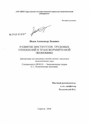 ГЛАВА I. ТЕОРЕТИЧЕСКИЕ ОСНОВЫ ИССЛЕДОВАНИЯ РАЗВИТИЯ ТРУДОВЫХ ОТНОШЕНИЙ В ТРАНСФОРМИРУЕМОЙ ЭКОНОМИКЕ