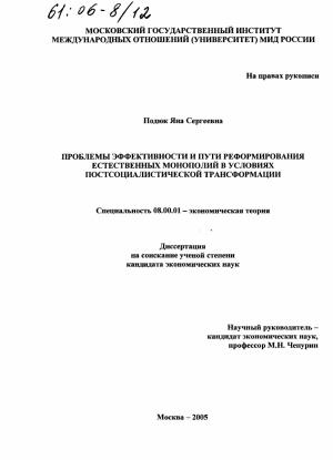 ГЛАВА 3. ПУТИ РЕФОРМИРОВАНИЯ ЕСТЕСТВЕННЫХ МОНОПОЛИЙ В