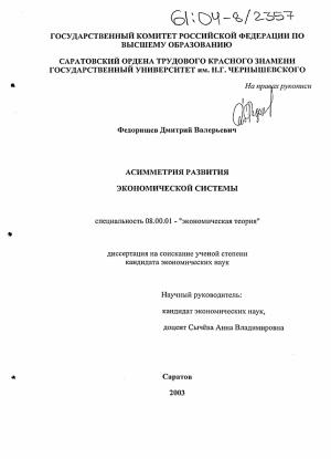 асимметрии развития экономической системы