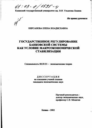 Глава I. Теоретикометодологические вопросы государственного регулирования банковской системы в условиях трансформационной экономики