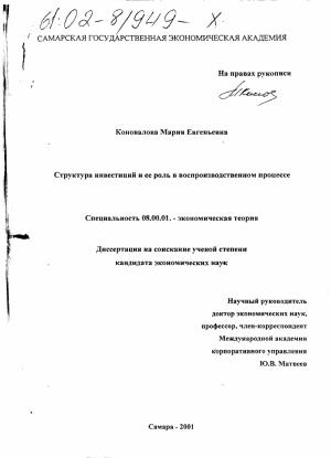 1 .ТЕОРЕТИКОМЕТОДОЛОГИЧЕСКИЕ ОСНОВЫ ИССЛЕДОВАНИЯ СТРУКТУРЫ ИНВЕСТИЦИЙ.