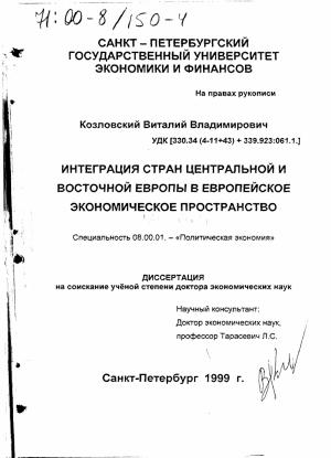 Интеграция стран Центральной и Восточной Европы в европейское экономическое пространство