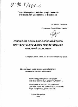 2.1. Становление социальноэкономического партнерства субъ ектоэ рыночной экономики