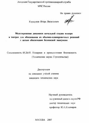 2.3 Математическая модель начальной стадии пожара для сценического помещения театра с колосниковой сценой при возникновении пожара на сцене.