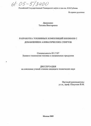 5. РАЗРАБОТКА ВЫСОКООКТАНОВОЙ ТОПЛИВНОЙ КОМПОЗИЦИИ С ДОБАВЛЕНИЕМ АЛИФАТИЧЕСКИХ СПИРТОВ