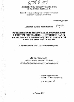 Эффективность многолетних бобовых трав в занятом, сидеральном и кулисном парах на черноземах обыкновенных приазовской зоны Ростовской области