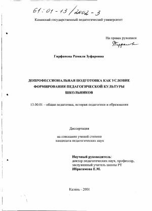Допрофессиональная подготовка как условие формирования педагогической культуры старшеклассников