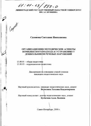 Организационно-методические аспекты комплексного подхода к устранению у дошкольников речевых нарушений