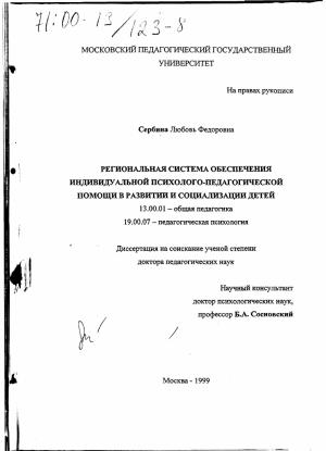 Региональная система обеспечения индивидуальной психолого-педагогической помощи в развитии и социализации детей