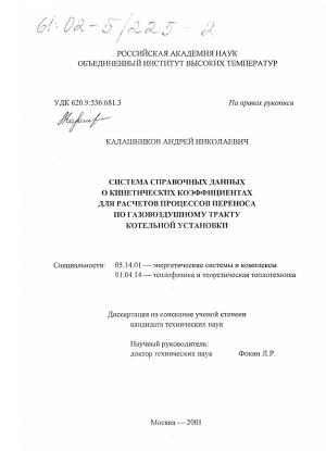Система справочных данных о кинетических коэффициентах для расчетов процессов переноса по газовоздушному тракту котельной установки