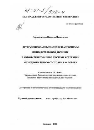Детерминированные модели и алгоритмы принудительного дыхания в автоматизированной системе коррекции функционального состояния человека