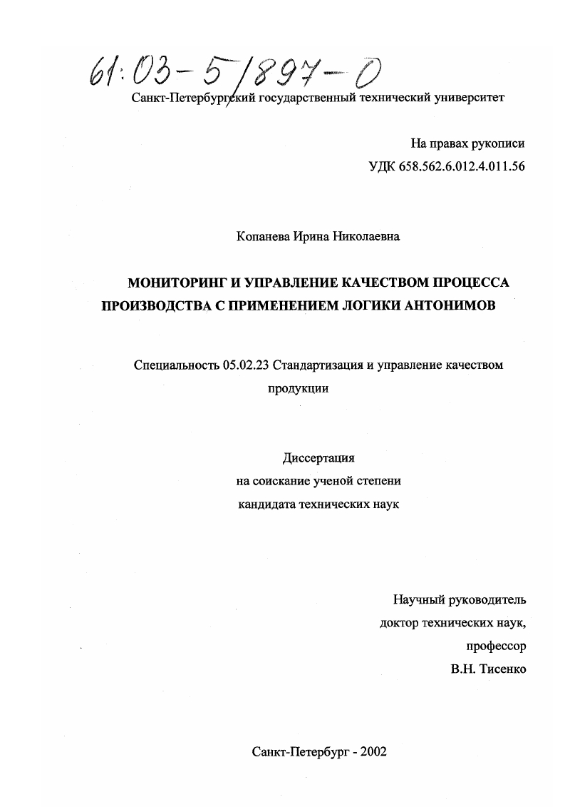 Глава 3. Оценивание качества процесса производства с помощью логики