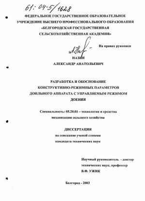 Разработка и обоснование конструктивно-режимных параметров доильного аппарата с управляемым режимом доения