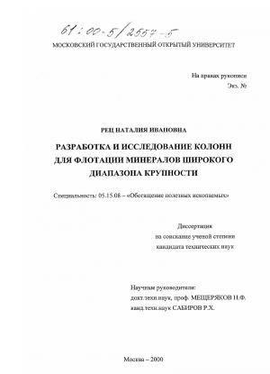 Разработка и исследование колонн для флотации минералов широкого диапазона крупности