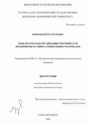 Глава 1. Анализ моделей и обоснование комплекса задач организации торговой сети предприятия на рынке строительных материалов
