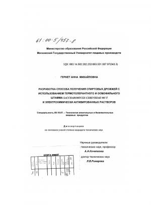 Разработка способа получения спиртовых дрожжей с использованием термолерантного и осмофильного штамма Saccharomyces cerevisiae 985 Т и электрохимически активированных растворов