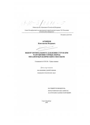 Выбор оптимального давления струй при разрушении горных пород механогидравлическим способом