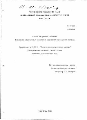 2. Однопродуктовые модели поведения естественной и остальной составляющей экономики
