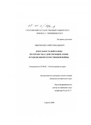 Деятельность войск НКВД по охране тыла действующей армии в годы Великой Отечественной войны