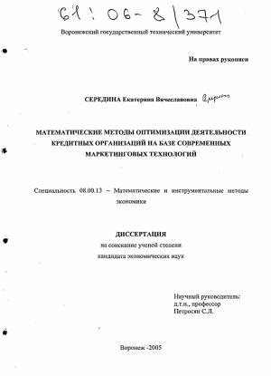 2. Формирование математических методов и механизмов оптимизации маркетинговой деятельности кредитных организаций