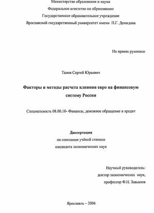 2 Глава. Методологические основы определения влияния евро на финансовую систему России.
