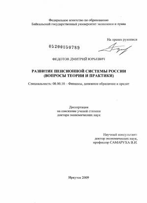 2. Развитие государственной пенсионной системы России.