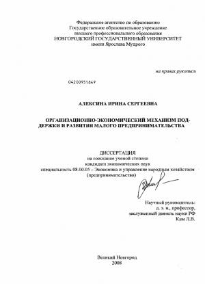 Глава 3. Основные направления совершенствования организационноэкономического механизма поддержки и развития малого предпринимательства