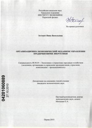 1.1. Сущность и содержание организационноэкономического механизма управления предприятием энергетики на региональном уровне в условиях рыночных отношении.