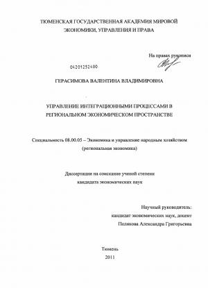 ЭКОНОМИЧЕСКОЙ ИНТЕГРАЦИИ НА ТЕРРИТОРИИ РОССИЙСКОЙ ФЕДЕРАЦИИ