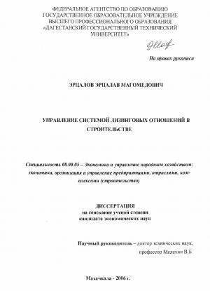 1.3. Совершенствование системы лизинговых отношений в строительстве ГЛАВА 2. ПРЕДПРИНИМАТЕЛЬСКАЯ СРЕДА И ОСОБЕННОСТИ ФИНАНСИРОВАНИЯ ЛИЗИНГОВОЙ ДЕЯТЕЛЬНОСТИ В СТРОИТЕЛЬСТВЕ