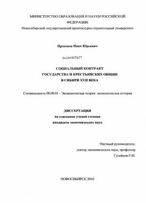 2.3. Социальный контракт государства и крестьянских общин в России в XVIIXX вв. сибирская специфика и общероссийский контекст 5 ЗАКЛЮЧЕНИЕ