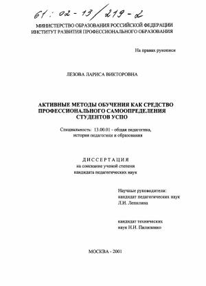 Активные методы обучения как средство профессионального самоопределения студентов УСПО