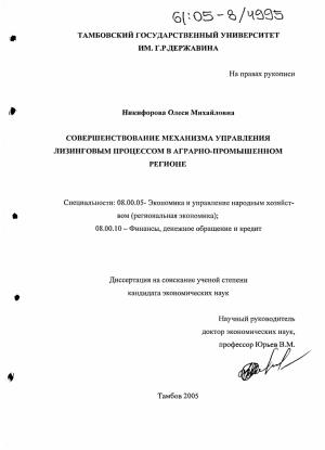 ее основе механизма управления лизинговым процессом в Тамбовской