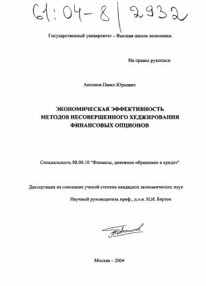 ГЛАВА 4. ЭФФЕКТИВНОСТЬ МЕТОДОВ НЕСОВЕРШЕННОГО ХЕДЖИРОВАНИЯ