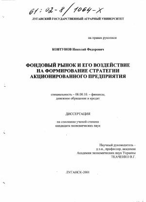 2.2. Фондовый рынок доминирующий фактор формирования стратегии акционированного предприятия