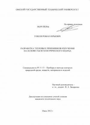 Глава 3 Конструктивнотехнологические особенности тепловых приемников излучения на основе пьезоэлектрического кварца