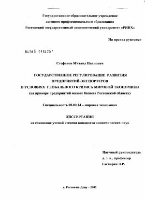 ГЛАВА 3. Значение государственного регулирования в укреплении экспортного потенциала предприятий малого