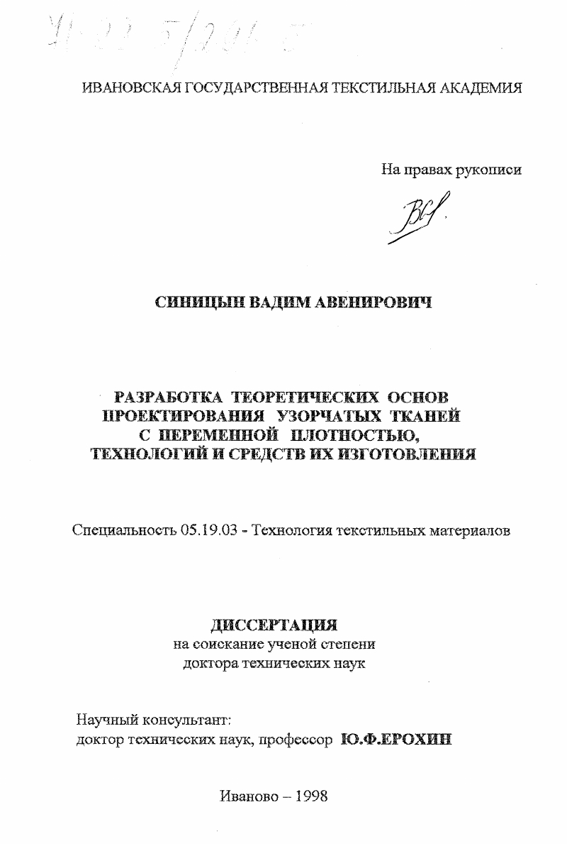 Разработка теоретических основ проектирования узорчатых тканей с переменной плотностью, технологий и средств их изготовления