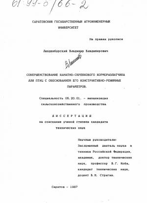 Совершенствование канатно-скребкового кормораздатчика для птиц с обоснованием его конструктивно-режимных параметров