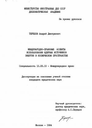Международно-правовые аспекты использования ядерных источников энергии в космическом пространстве