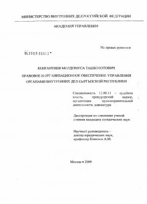 Правовое и организационное обеспечение управления органами внутренних дел Кыргызской Республики