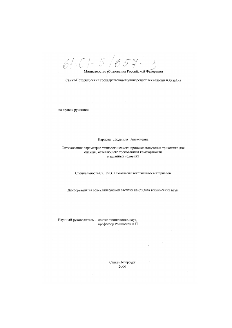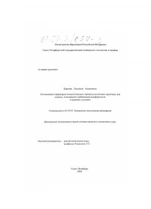 Оптимизация параметров технологического процесса получения трикотажа для одежды, отвечающего требованиям комфортности в заданных условиях
