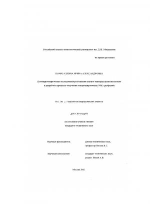 Потенциометрические исследования разложения апатита минеральными кислотами и разработка процесса получения концентрированных NPK-удобрений