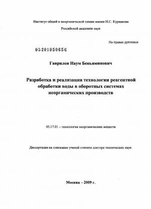 технологии реагентной обработки оборотной воды в оборотных системах неорганических производств