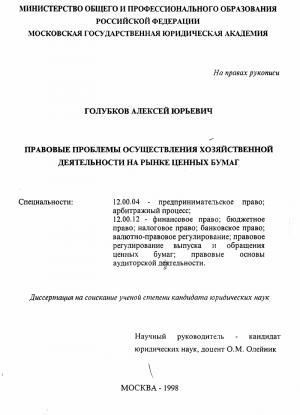 века рыночных отношений начались попытки нового осмысления юридических аспектов как самих ценных бумаг, так и фондового рынка. Однако нельзя не отметить, что основной тенденцией исследователей современности является экстраполяция дореволюционного учения о ценных бумагах на современную действительность, при этом зачастую без учета произошедших перемен как в юридической науке, так и в научно-технической сфере. Ярко выраженными примерами такого подхода являются глава 7 Гражданского кодекса Российской Федерации “Ценные бумаги”, а также единственная доктринальная работа нашего времени, посвященная юридическим аспектам теории ценных бумаг - книга В.А. Белова “Ценные бумаги в российском гражданском праве”32. Вопросам, касающимся правовой регламентации рынка ценных бумаг, не было посвящено ни одной сколь бы то ни было значительной работы.
