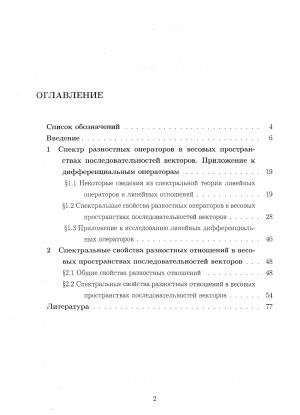 Спектральный анализ разностных операторов и отношений в весовых пространствах последовательностей векторов