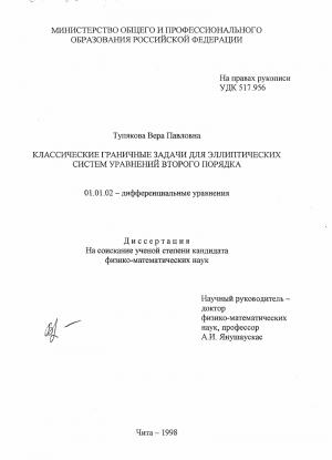 Классические граничные задачи для эллиптических систем уравнений второго порядка