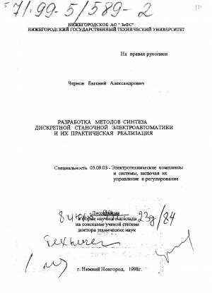 Разработка методов синтеза дискретной станочной электроавтоматики и их практическая реализация
