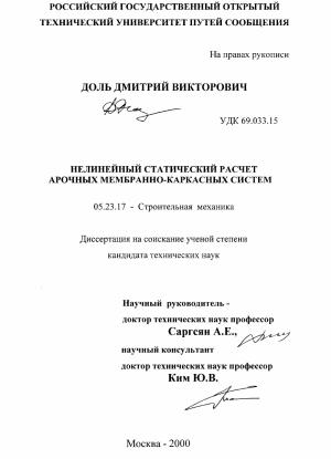 Нелинейный статический расчет арочных мембранно-каркасных систем