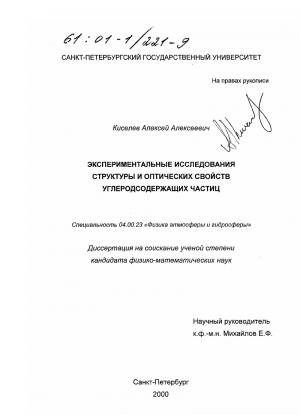 1.5.6 Изменчивость свойств атмосферной сажи и постановка задачи......64